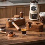 Espresso workflow efficiency depends on having tools organized and immediately accessible. Searching for your tamper or setting portafilters on wet counters between shots disrupts timing and creates mess. This dedicated stand keeps everything in assigned positions within arm’s reach, streamlining the dosing and tamping process.