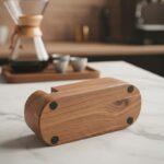 Before first use, wipe the walnut surface with food-safe mineral oil to protect the wood and enhance the grain appearance, repeating monthly to prevent drying and cracking. Adjust the height mechanism by turning the knurled nut clockwise to raise or counterclockwise to lower the portafilter support until it sits at the correct level for your basket depth. The portafilter should rest securely without wobbling. Clean the stand regularly by wiping with a damp cloth, never submerging in water or placing in the dishwasher, as moisture causes walnut to warp and crack. Immediately wipe up any coffee spills or water to prevent staining. The walnut may darken naturally over time with exposure to light and oils, which is normal aging for solid wood. If the surface becomes rough, lightly sand with fine 220-grit sandpaper and reapply mineral oil. Position the stand away from direct heat sources like espresso machine steam wands or heating elements, as excessive heat can damage the wood. The silicone pads may collect coffee grounds, so remove and clean them periodically. Natural characteristics like knots, mineral lines, and grain variations are inherent to walnut and should be expected.
