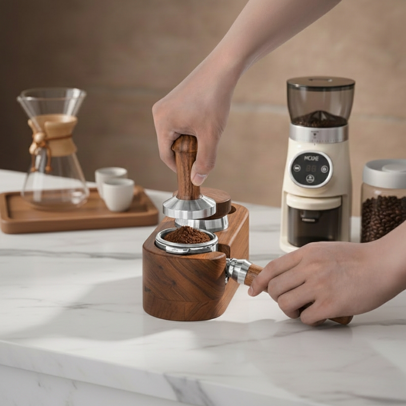 Anyone who pulls multiple espresso shots daily, wants better counter organization, values natural materials over plastic, or needs a stable tamping base will find this stand practical. The solid construction and timeless design also make it suitable as a gift for home baristas or coffee enthusiasts setting up espresso stations.