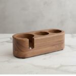 Solid walnut offers advantages over plastic or metal organizers. The natural wood absorbs minor vibrations during tamping, providing a more stable base than lightweight alternatives. Walnut is also naturally moisture resistant compared to other woods, though it still requires proper care. The warm brown color and visible grain add visual appeal to espresso setups, complementing stainless steel machines and grinders better than industrial looking metal racks.